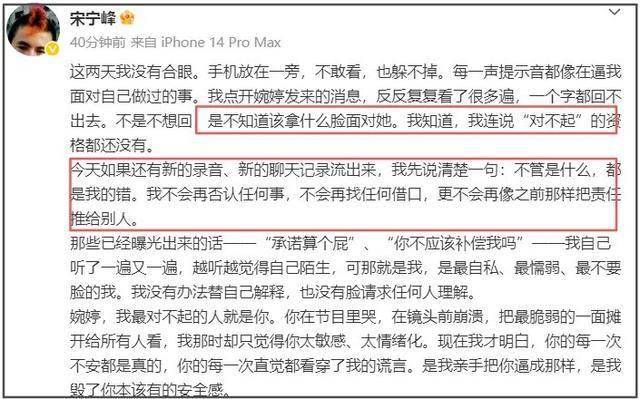 在出轨门爆出一天后,宋宁峰站出来道歉了。
