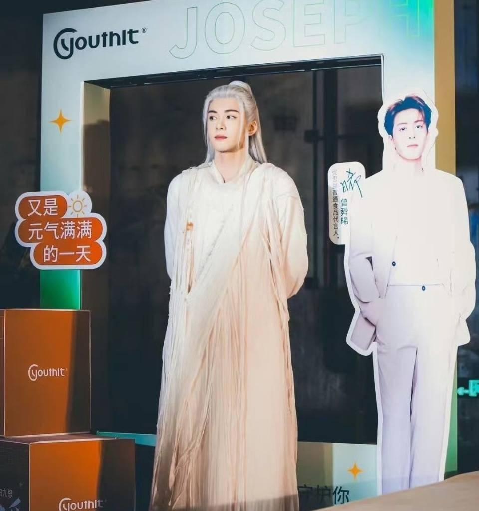 牌子火了,明星自然闻风而来。曾舜晞顶着 “大眼仔” 人设当官方代言人,搞 “眨眼暗号” 营销冲上热搜,阅读量近3亿;