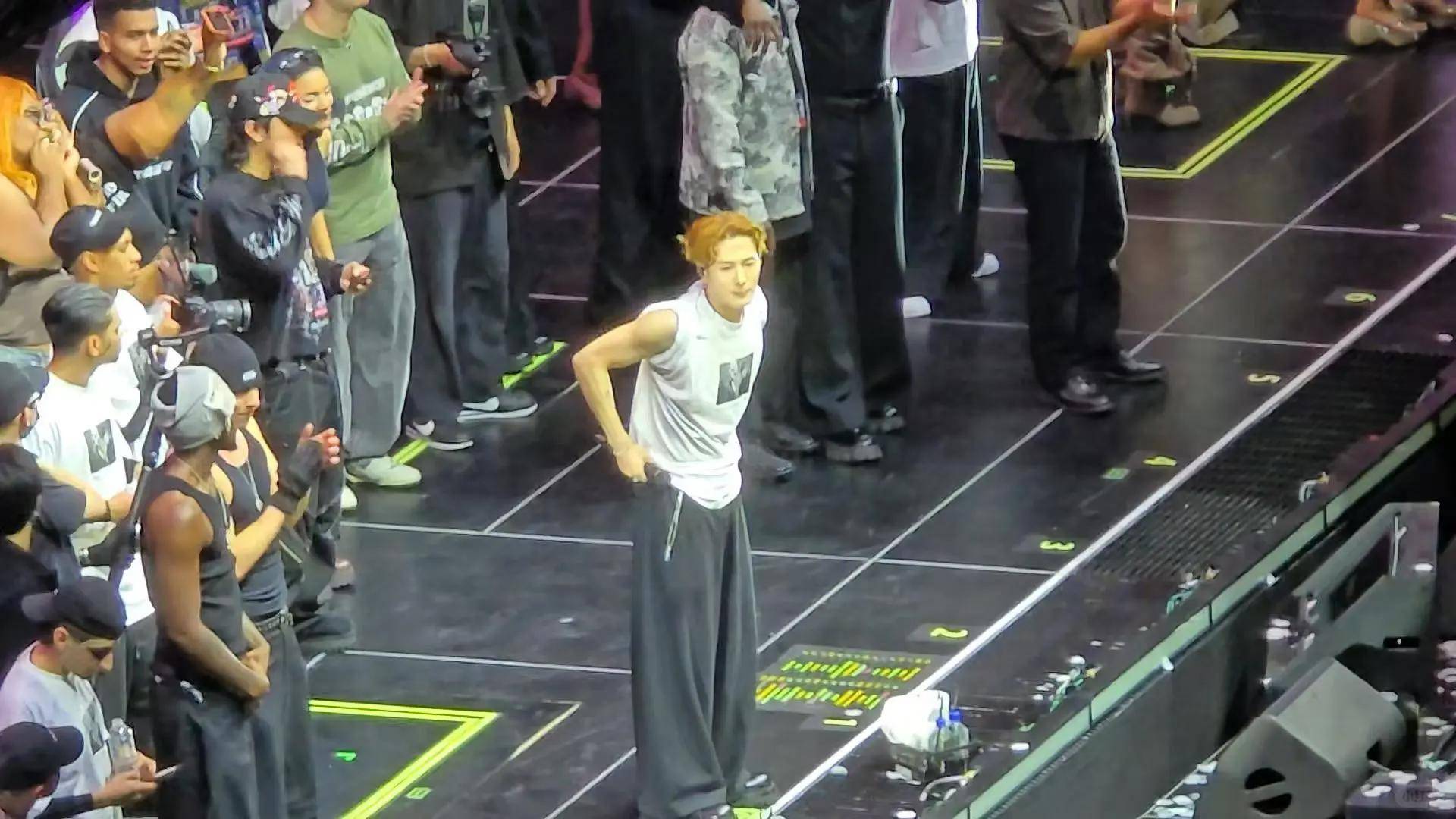 演出进行到粉丝互动环节,他先是随机邀请了一位前排的女粉丝上台近距离接触,还主动让对方触摸自己的肌肉。
