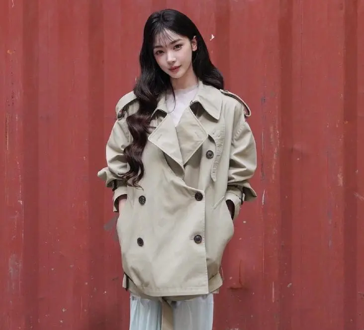 她选用卡其色风衣搭配白色纱裙,温柔中带着飒气。