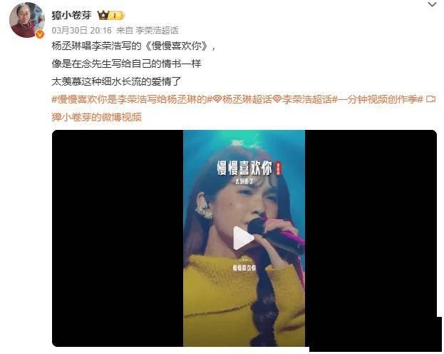 “杨丞琳在台上发光,李荣浩在台下默默应援。”