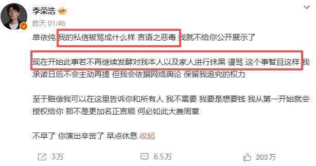这两天,李荣浩和单依纯的事儿闹得沸沸扬扬。