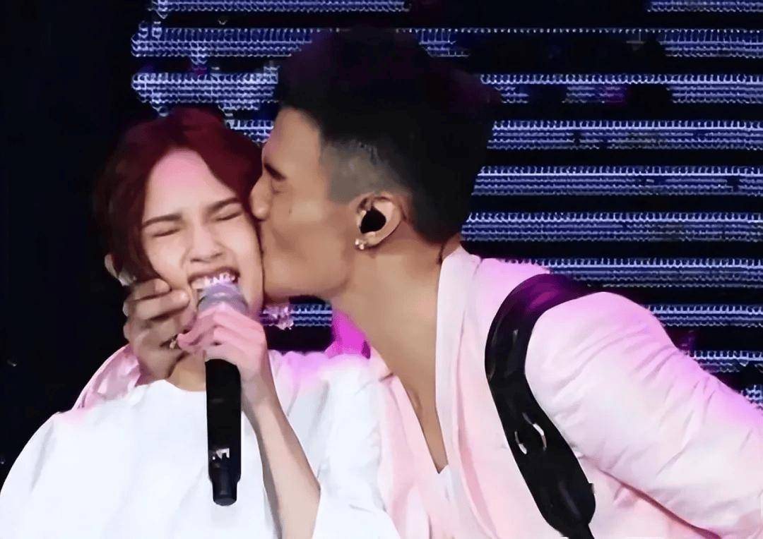 两个人合唱了一首歌,唱到最后,李荣浩突然凑过去,在杨丞琳脸上亲了一口。