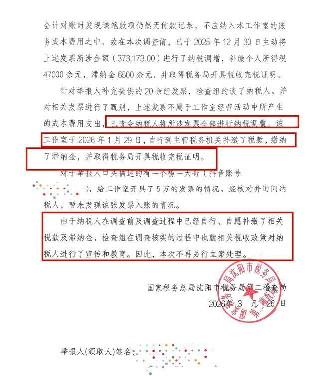 调查结果显示,30多万的发票虚开的确存在,需要补缴个人所得税4.7万,以及滞纳金6500多。