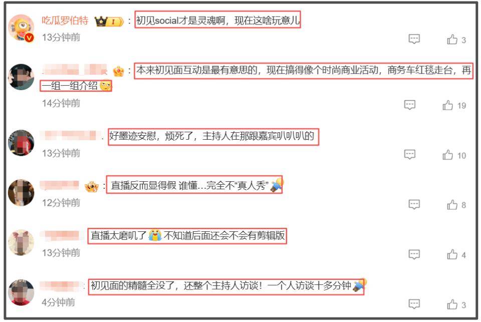 网友们彻底坐不住了,认为这样的直播模式非常不讨喜,全程看得人昏昏欲睡想快进,和之前的初见面相比天差地别, 真人秀也彻底变了味儿。