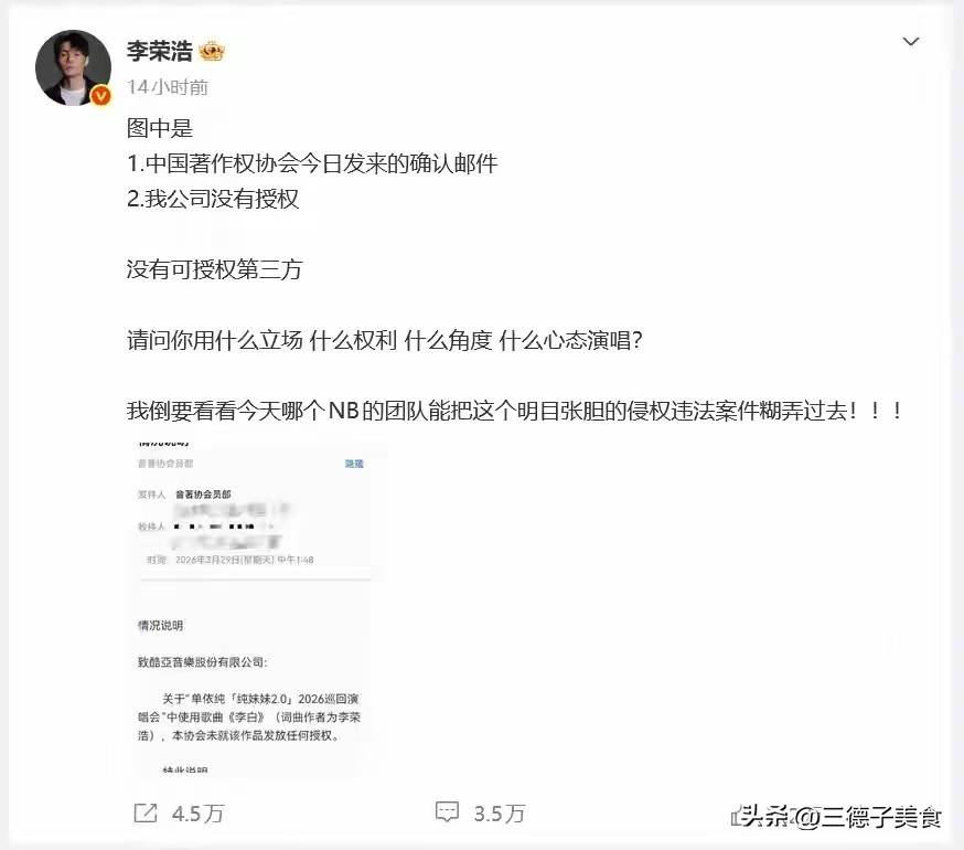 好在,李荣浩脑子清楚,没有被对方糊弄过去,亲自下场发微博时也把事情讲的清清楚楚,明明白白,甚至连对方的反应都预判了。