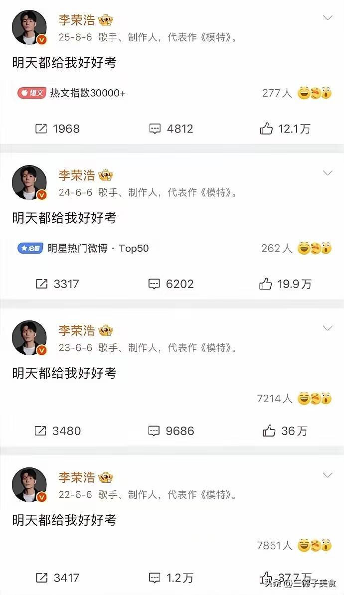 他自己虽然三次高考失利,但却每年6月6日雷打不动的盯着高考生,还发微博提醒他们“明天都给我好好考”。