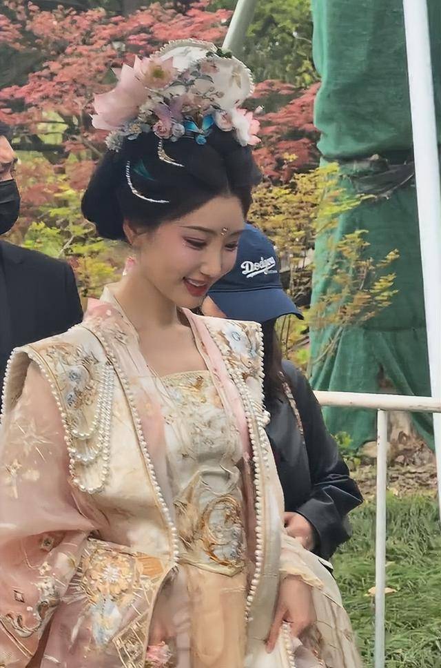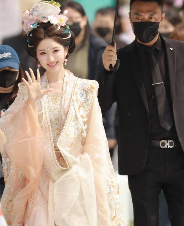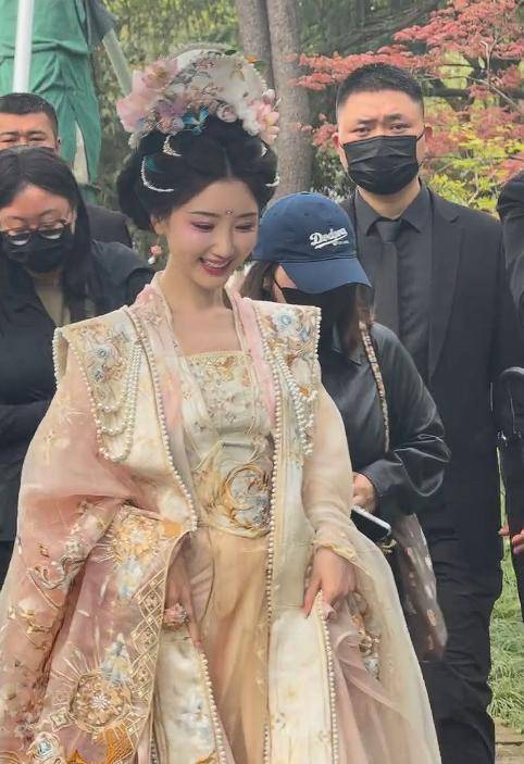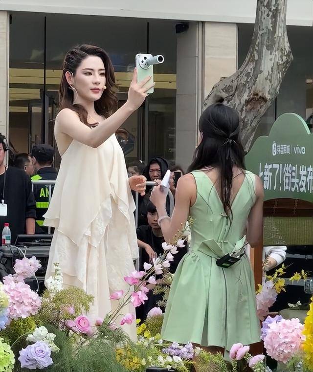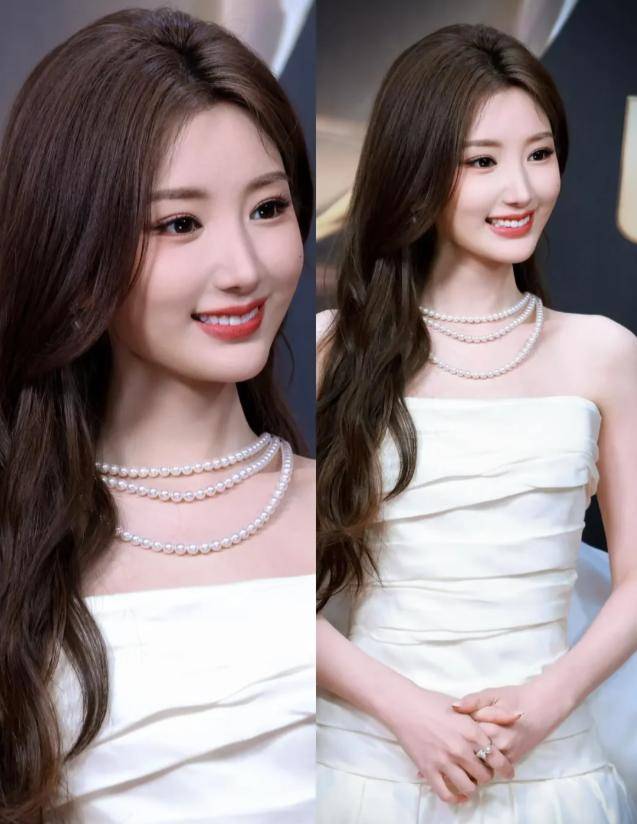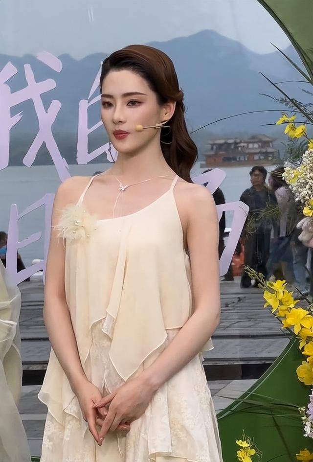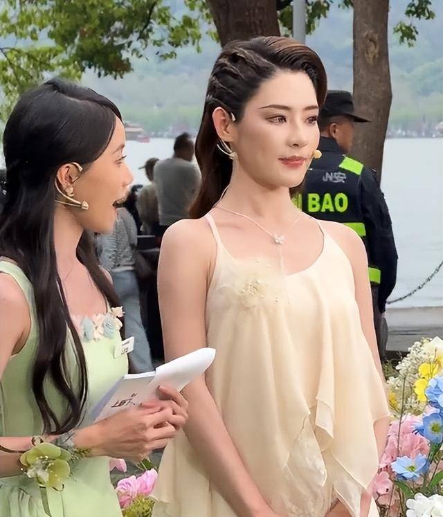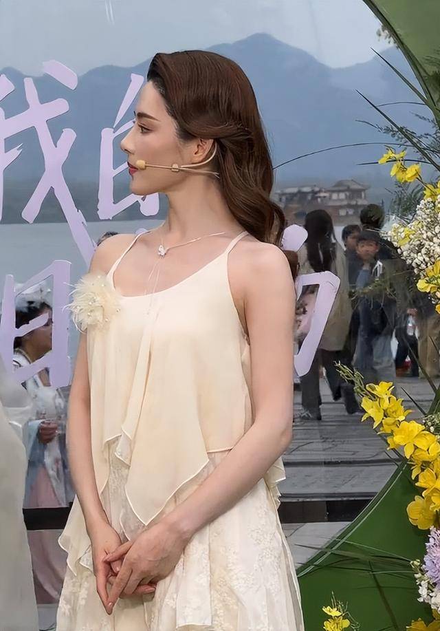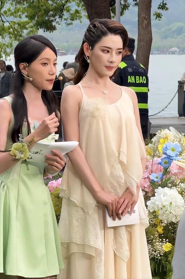 再看同样是在西湖做活动的毛晓彤,一身鎏金珍珠纱裙温婉大气,脸小得像巴掌一样,颅顶饱满、下颌线流畅,哪怕是路人原相机直拍,五官依旧精致舒展,头肩比优越得让人羡慕。