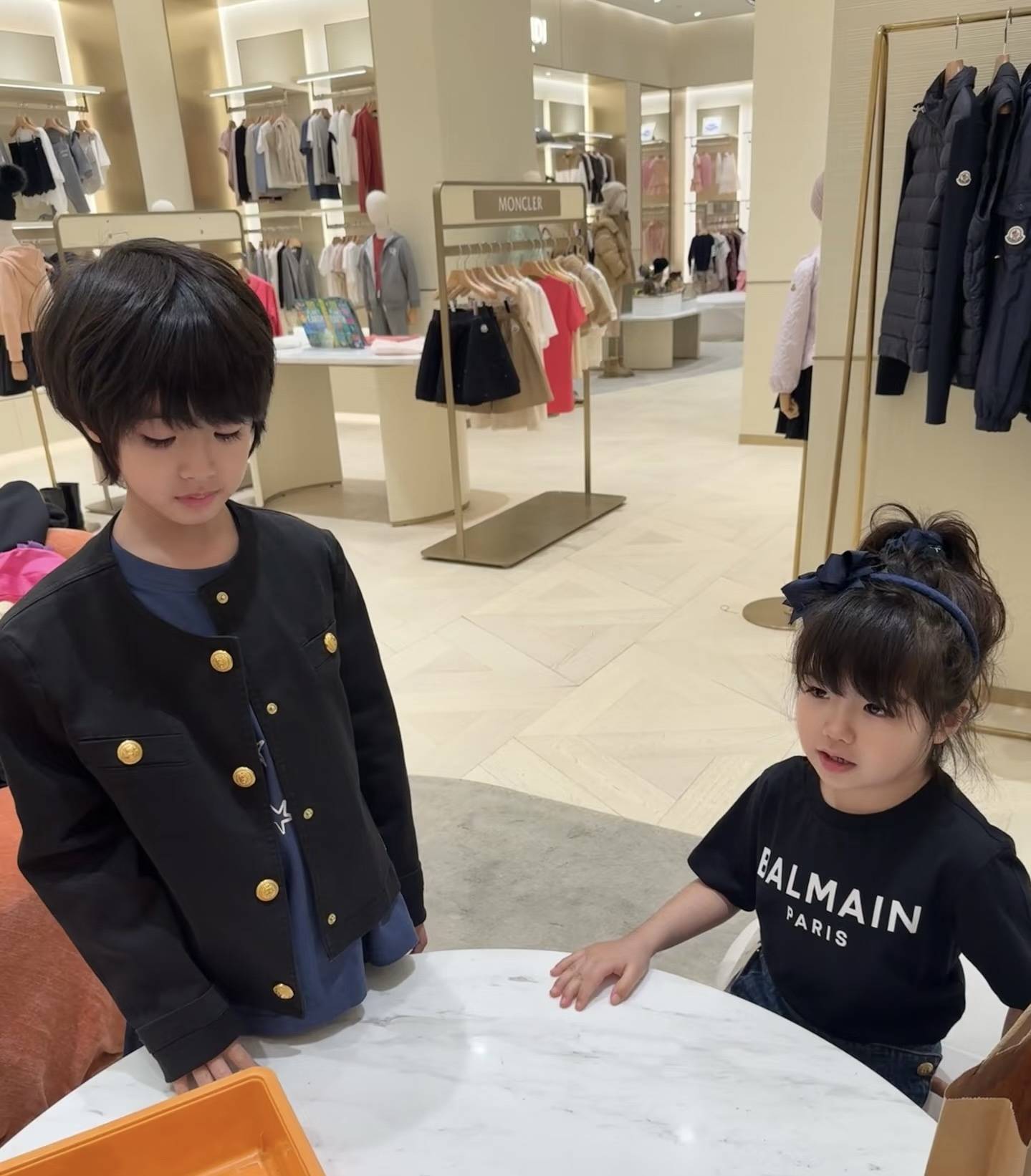 他们的儿子也是超级帅气,完美遗传了父母的好基因。儿女的长相都更像妈妈,大眼睛、长睫毛、脸型圆润,很有贵族王子公主的感觉。