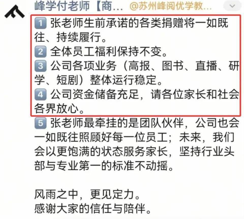 这里面的人,包括了 张雪峰的家人、苏州地方人员、张雪峰的好友、张雪峰敲定过的合作伙伴,还有公司的众多家长客户。