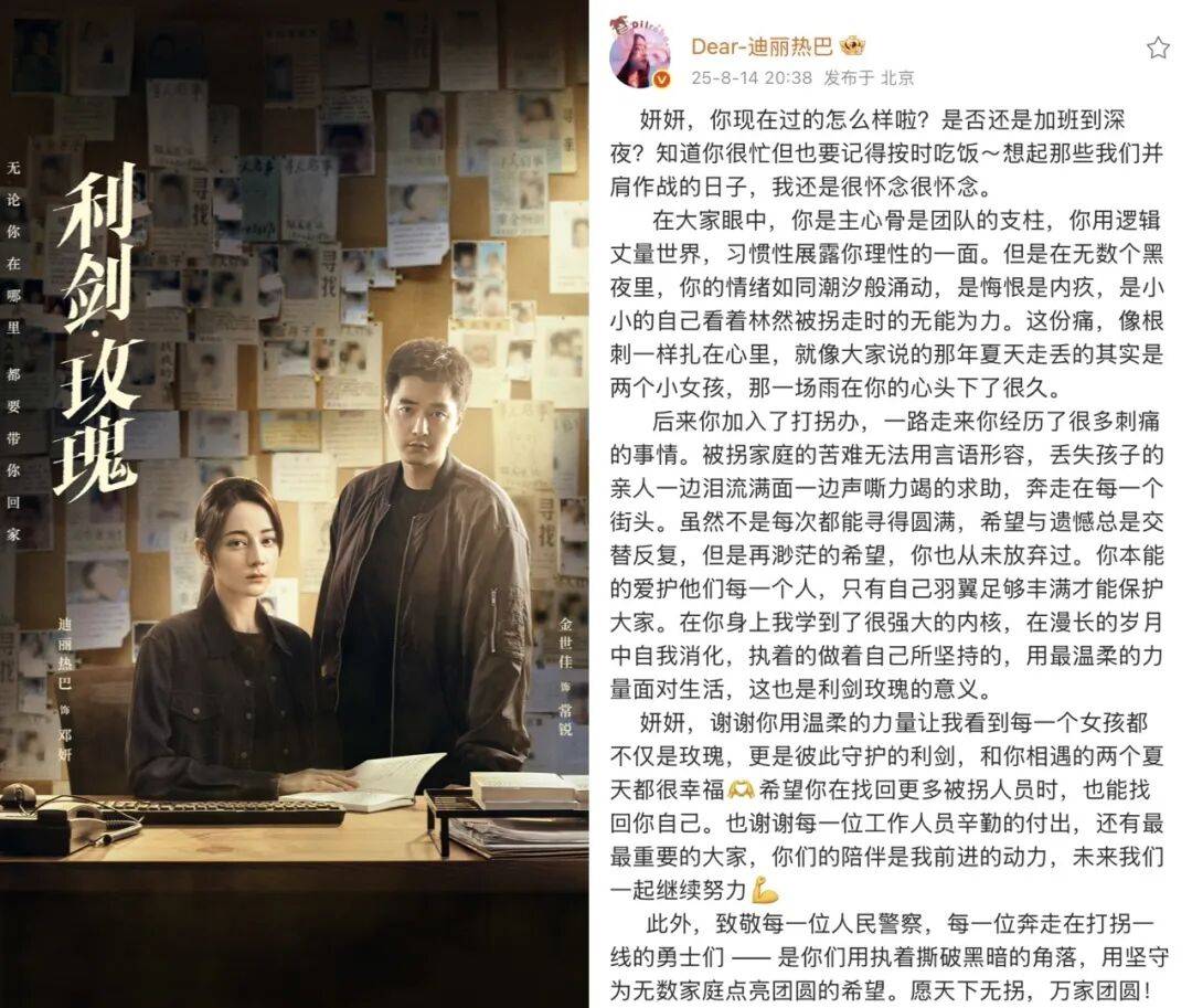 就像《利剑·玫瑰》收官时她写的长文那样,“执着做着自己所坚持的,用最温柔的力量面对生活,这也是利剑玫瑰的意义。”