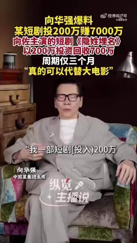 2026年4月1日,香港影业巨头、中国星集团主席向华强的一番话,在影视行业投下了一颗重磅炸弹。这位见证过香港电影黄金时代的大佬公开爆料:短剧行业存在惊人的“暴利神话”——某短剧项目仅投入200万元,竟狂赚7000万元,回报率高达35倍。