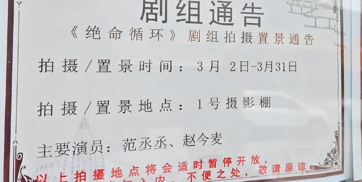 2026年3月2日-31日,《绝命循环》在佛山1号摄影棚拍摄置景,2028年中国大陆上映。