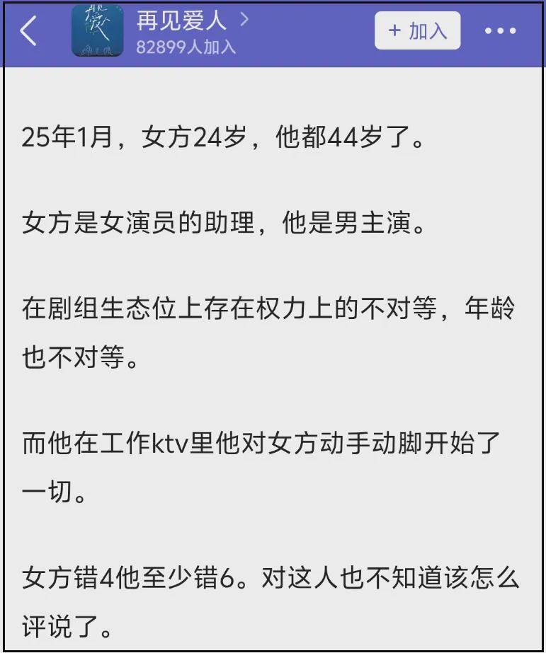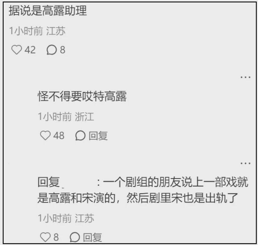 根据网友扒出的时间线,宋宁峰2025年进了一个名为《欢聚》的剧组,和高露饰演一对夫妻,作为高露的助理,Q女士也在。《欢聚》是2025年1月份在浙江开机,也就是说宋宁峰刚进组就盯上了别人家20多岁的女助理(Q女士)。