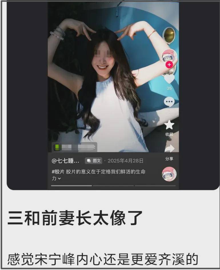 微妙的是,Q女士素颜和宋宁峰前妻齐溪堪称神似,都是又高又瘦的寡淡长相——只是Q女士更年轻,身材更好。