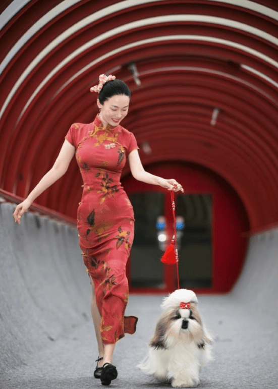 不仅如此,霍思燕还带着中国原生犬种西施犬征战国际赛场。去年12月,她穿着红色旗袍在比利时布鲁塞尔国际犬展上,从11020只全球赛犬中脱颖而出,拿下全场总冠军,成为唯一获奖的中国团队。