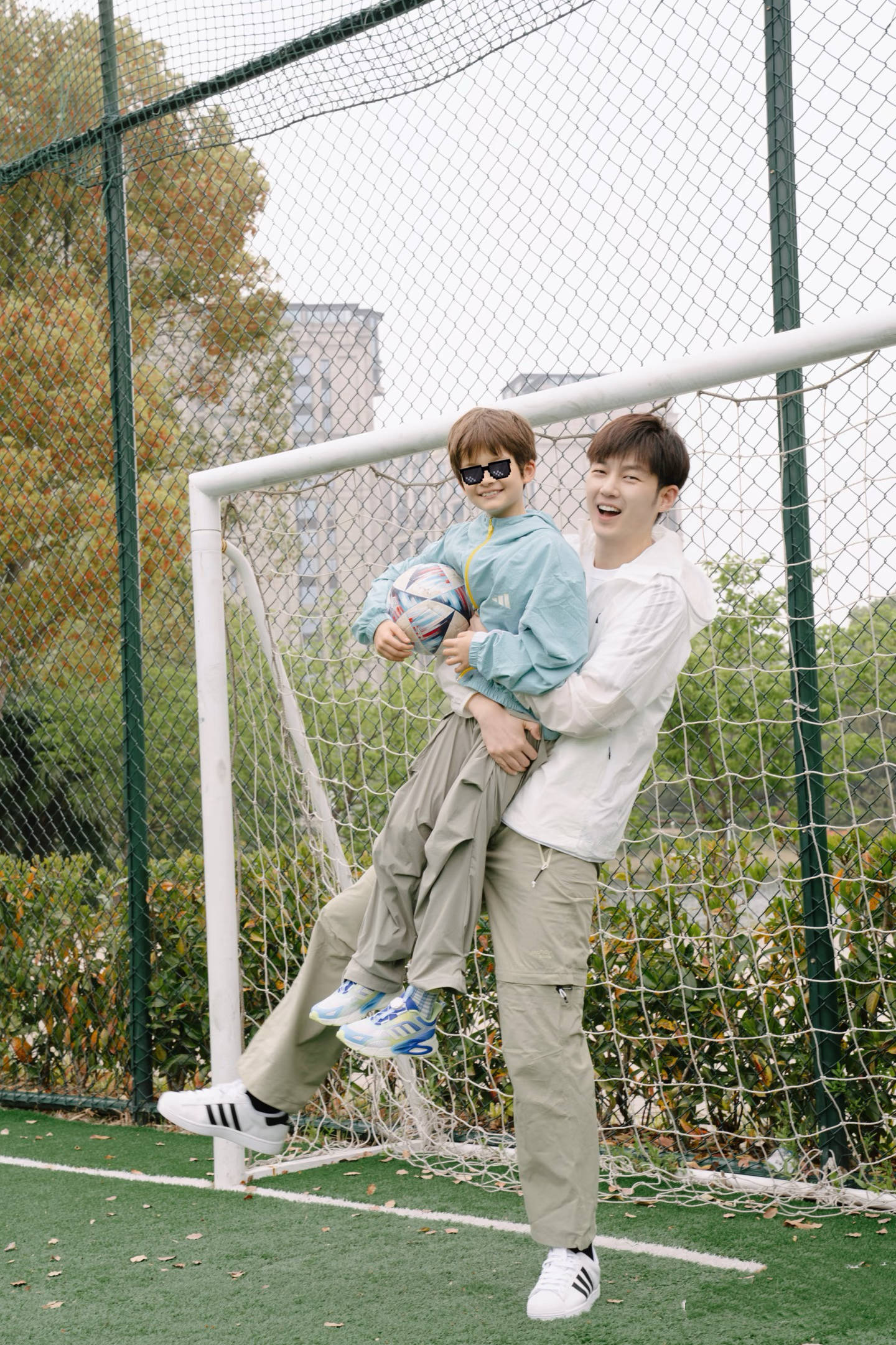 尤利斯8岁了,身高腿长、混血颜值非常帅气。他在绿茵场拍照,手里抱着足球,嘴角微微上扬,是小男孩特有的天真和纯美。