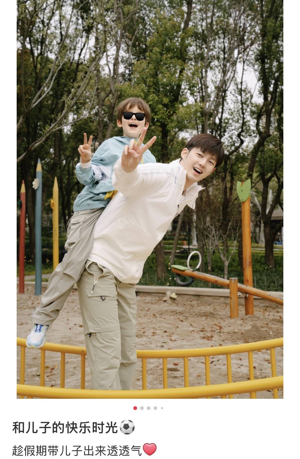 没想到现在董力的儿子尤利斯已经8岁了,董力晒出了假期和儿子一起逛公园的照片,父子俩穿情侣装清爽帅气。