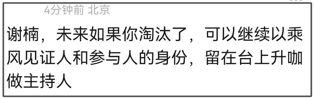 从《乘风》的直播也能看出湖南台现在面临的最大问题,不是没有好节目,而是没有好主持可用。网友都开始建议如果未来谢楠被淘汰,让她继续留下来当主持。就希望接下来的节目里,主持人能精进自己的专业度,否则换人可能只是时间问题。