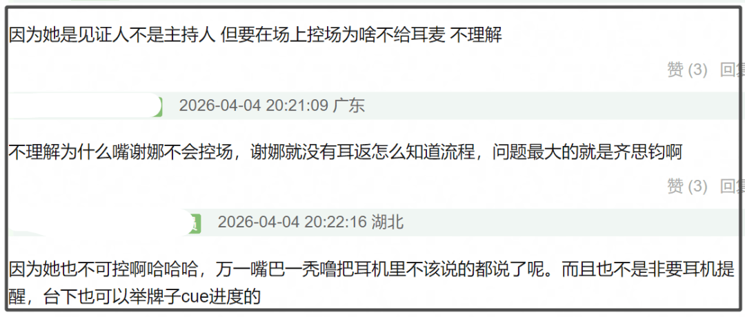 直播对主持人的要求很高,主持人最重要的作用就是控场,控制时间,不能跟着嘉宾的情绪走,但现在谢娜和齐思钧显然管不住嘉宾,这就让观众看得很疲惫,呼吁节目组换主持。