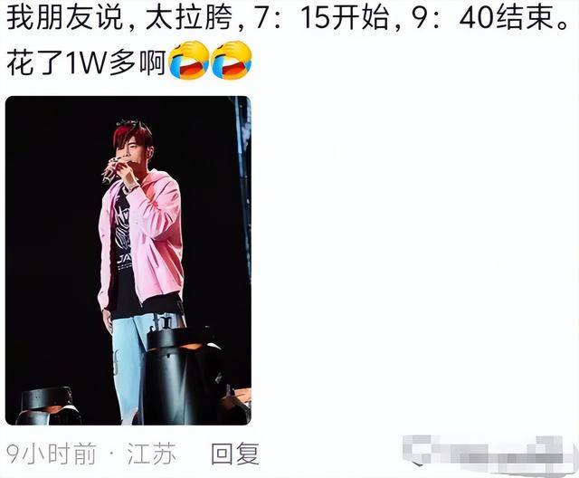 有网友说,自己朋友从黄牛那买的门票,一万多,可演唱会7点15开始,9点40就结束了。
