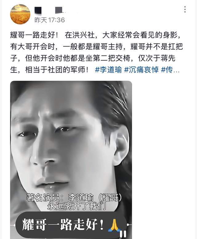 4月4号下午,多位来自业内的人士传来悲痛消息,知名港星李道瑜去世,年仅58岁,这个名字听起来可能陌生,但他在《古惑仔》中扮演的角色,相信诸多网友都耳熟能详,没错,就是洪兴的二把手“白纸扇”陈耀。