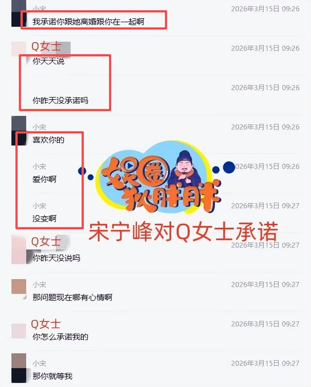 聊天记录中,明确看到Q小姐质问宋宁峰“你怎么承诺我的”。