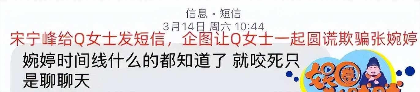 于是,在第一时间,宋宁峰给Q小姐发了一条短信,上面提及张婉婷(宋宁峰的妻子)对他出轨的事知道的一清二楚。