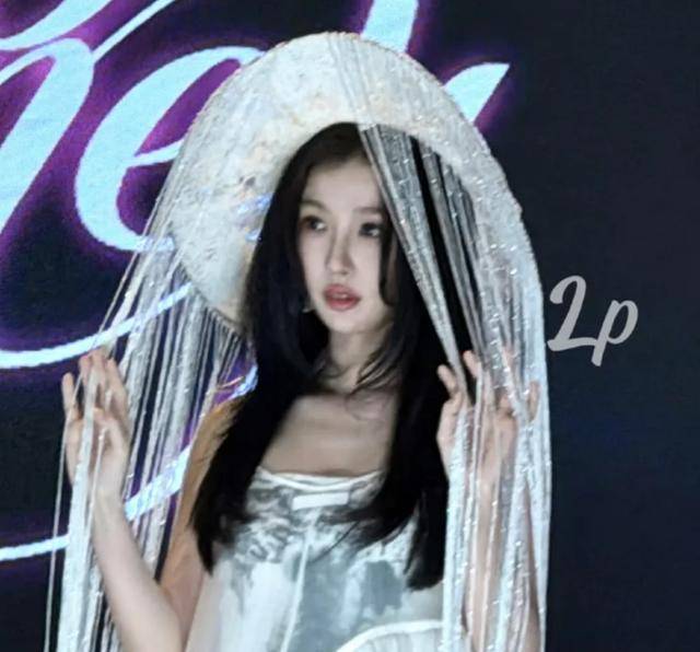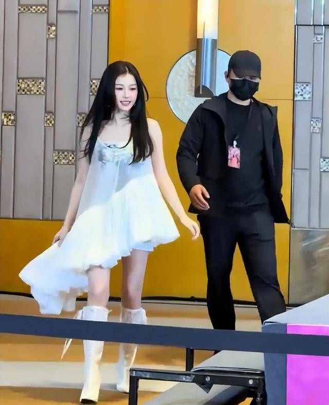 或许是察觉到第一套造型反响太差,中途她换了第二套白色吊带裙,搭配腿上的蕾丝绑带,本以为能挽回口碑,没想到翻车更严重。