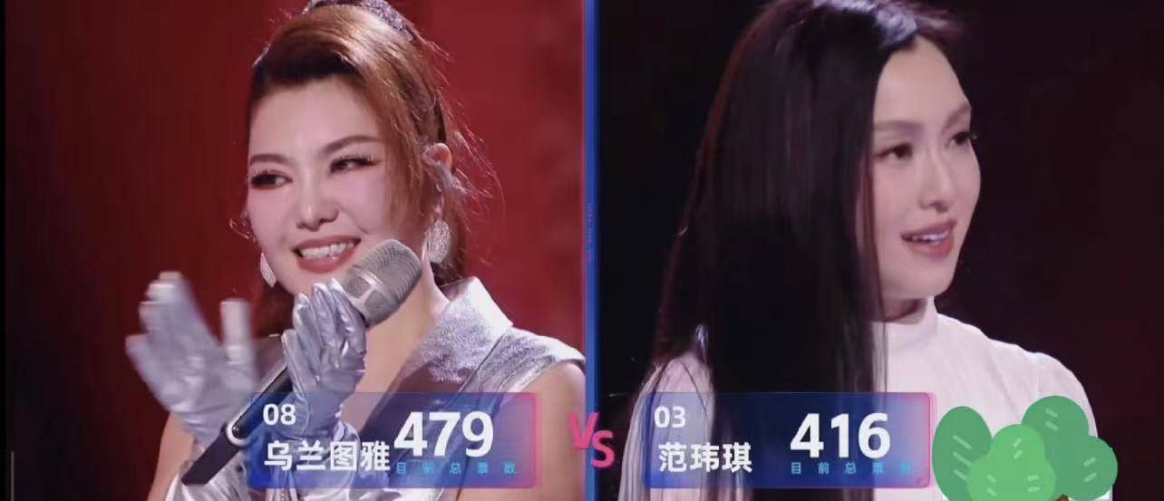 果然,在最终的投票环节,乌兰图雅获得了497票,而范玮琪获得416票,虽然两者相差63票的差距,但在综艺里投票不算差距大。