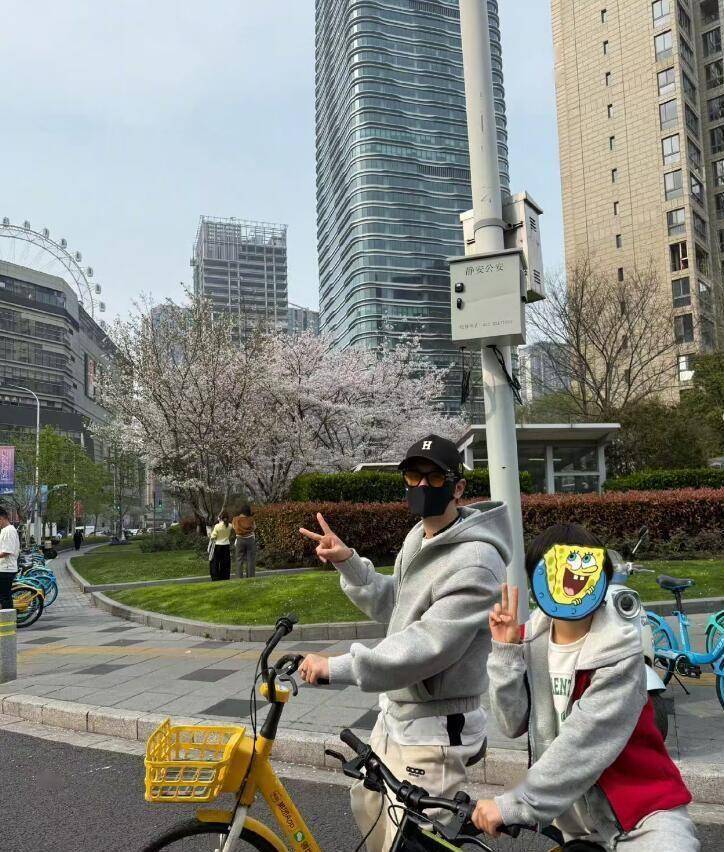 2026年4月4日,清明小长假,黄晓明在社交平台晒出了一组照片。 画面里,他戴著口罩和眼镜,骑著一辆共享单车。 旁边是他9岁的儿子小海绵,骑著一辆黑色的儿童自行车,父子俩背对镜头,齐齐比著剪刀手。 黄晓明的配文很简单:“和儿子一起春日骑行,趁著好天气,大家要多出门走走,每天都有好心情。 ”