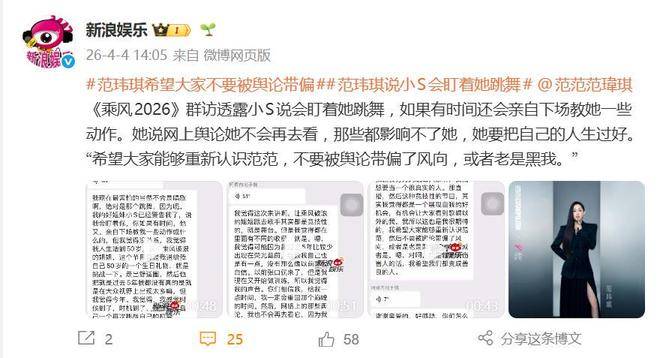 据4月4日的报道,一句自嘲式的坦白让范玮琪再度成为舆论焦点:现在最害怕的不是唱歌,绝对是跳舞!久未活跃在话题中心的她,因为综艺《乘风2026》的加盟,再次成为观众热议的对象。而给她带来这份既甜蜜又带压力的挑战,竟然是相识超过二十年的好姐妹——小S。