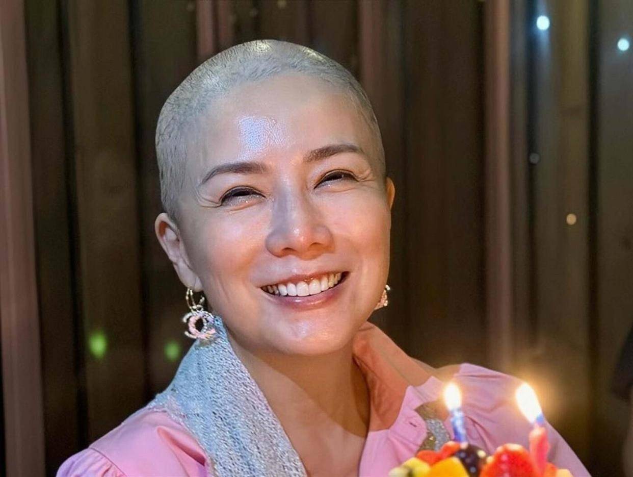 这位1998年香港小姐季军,曾经在荧幕上光彩照人,如今却不得不剃光了因化疗而掉光的头发,以寸头形象面对镜头。 她说话很慢,脸上带着明显的倦容,但眼神里却看不到绝望。 在社交平台分享的视频里,她甚至还能笑着问网友,有没有好看的TVB剧可以推荐,好打发住院的无聊时光。