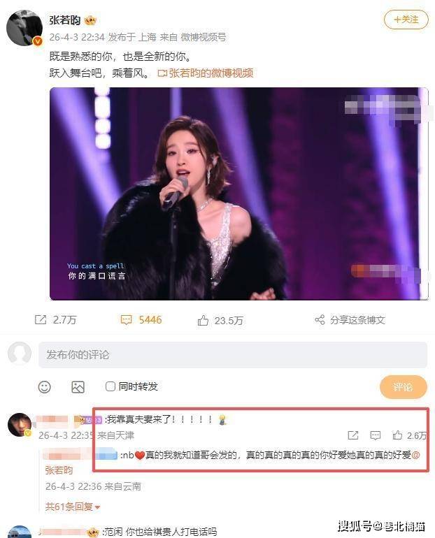 《乘风 2026》初舞台当天,张若昀准时在社交平台发出她的直拍,配文温柔又有力量:“既是熟悉的你,也是全新的你。跃入舞台吧,乘着风。”