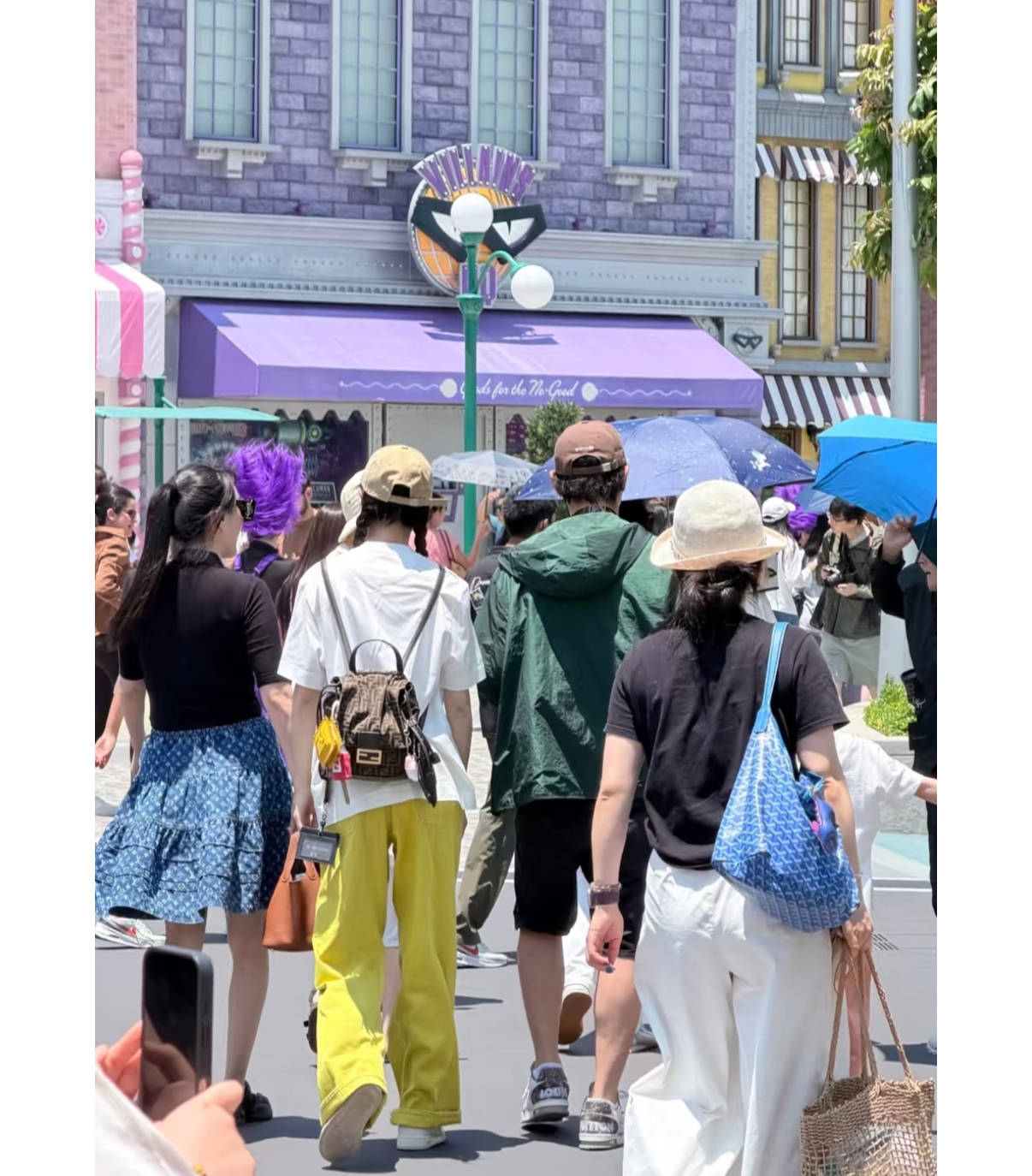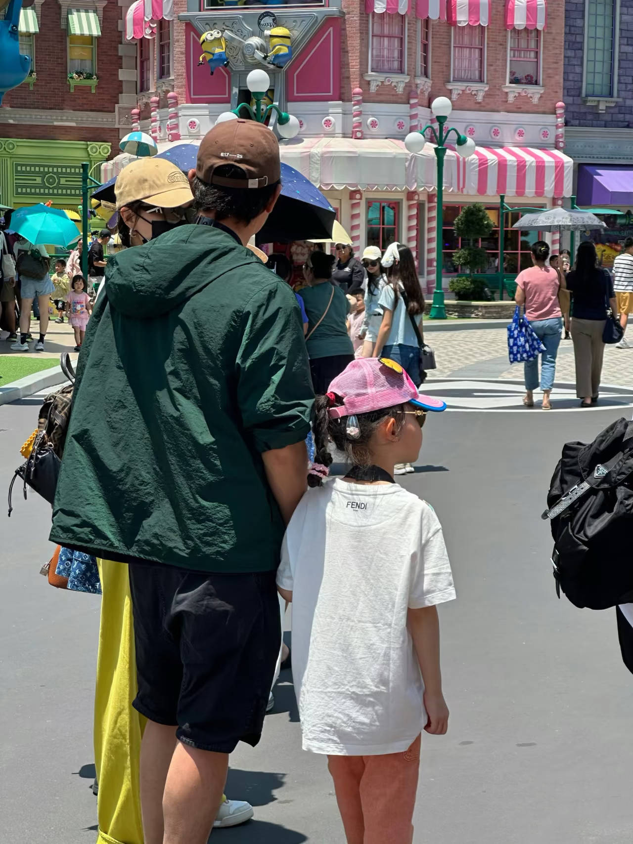 当天唐嫣打扮的格外清丽俏皮,唐嫣穿了一件白色T恤、搭配了明黄色的阔腿裤,还背着棕色双肩包、戴浅棕色棒球帽,双扎的麻花辫,只看背影的花、还以为是个小姑娘呢。