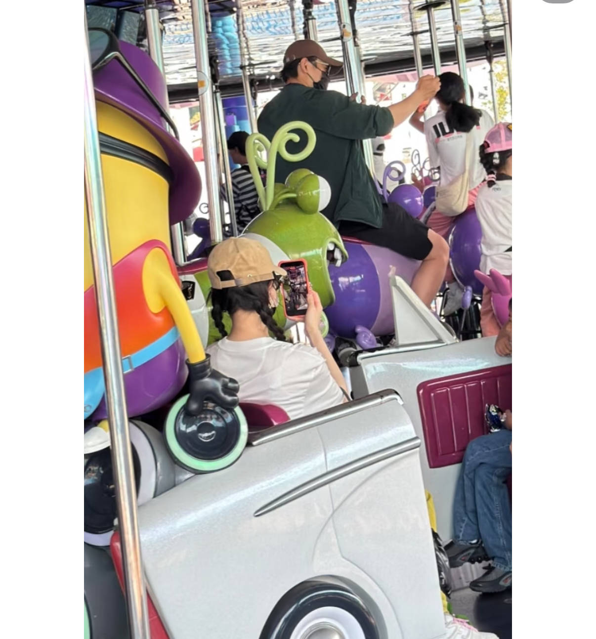 一家人一起坐旋转木马的画面,更是格外温馨。罗晋和小小糖坐在前面,他伸手去抚摸女儿的头发,这一幕真的太有爱了。