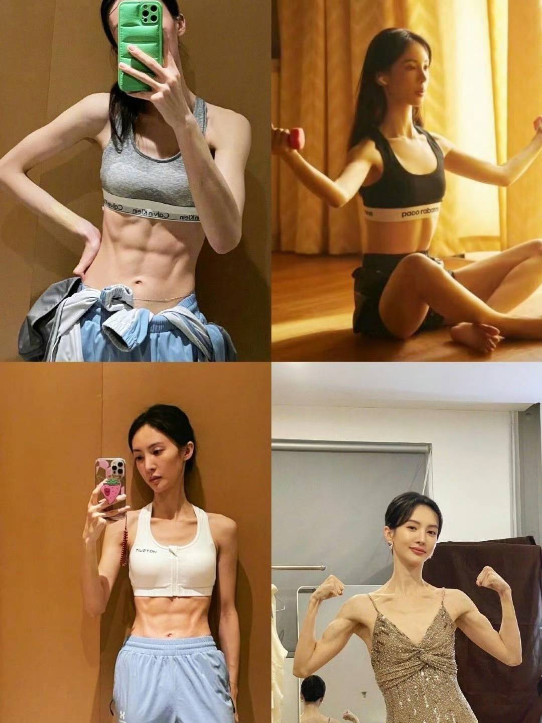 金晨又在微博上放大招了!4月3日一大早,她晒出一张对镜自拍,配文"快恢复,要变成不好惹的模样",照片里那腹肌线条清晰得跟雕刻出来似的,瞬间把热搜榜给炸了。要说金晨这身材,在娱乐圈绝对是"金刚芭比"级别的存在。别看她平时瘦得跟纸片人似的,一撩衣服全是硬核肌肉。四块腹肌整整齐齐排列着,马甲线深得能养鱼,肱二头肌更是比很多男生还壮实。之前她穿吊带礼服参加活动,愣是对着镜头秀手臂肌肉,那画面简直就是"甜美脸蛋+猛男身材"的反差萌,粉丝都调侃她是"内娱第一金刚芭比"。