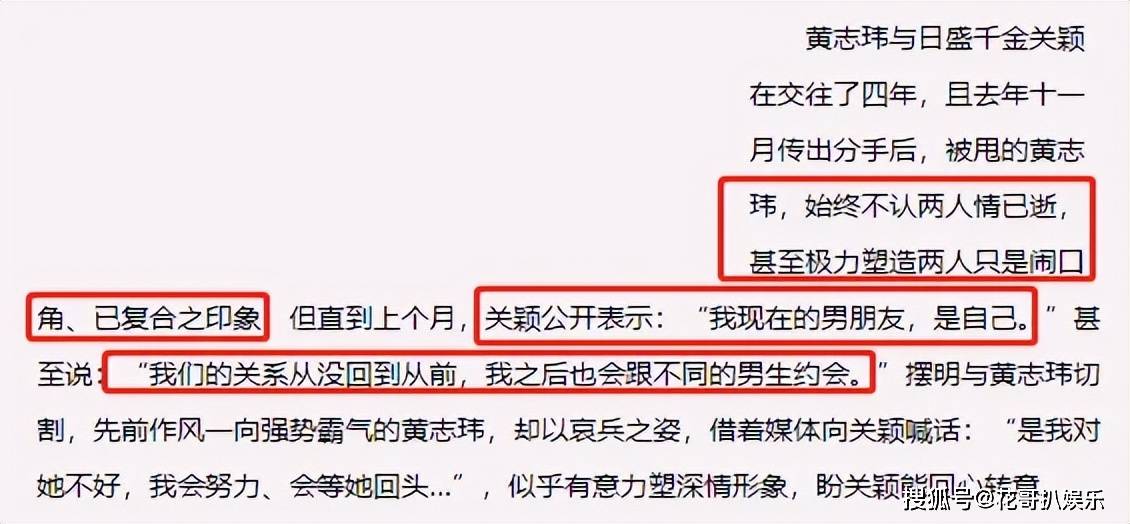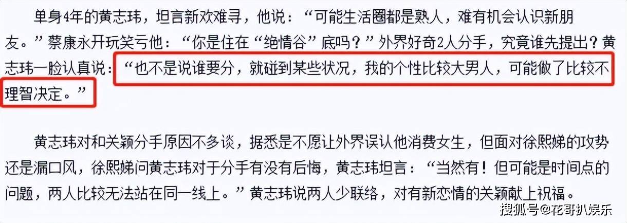 2007年两人正式分手,关颖直言回不到过去,黄志玮却一直放不下,对外声称只是闹别扭。