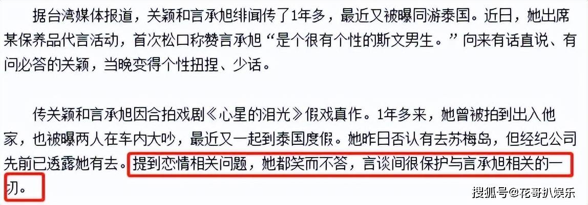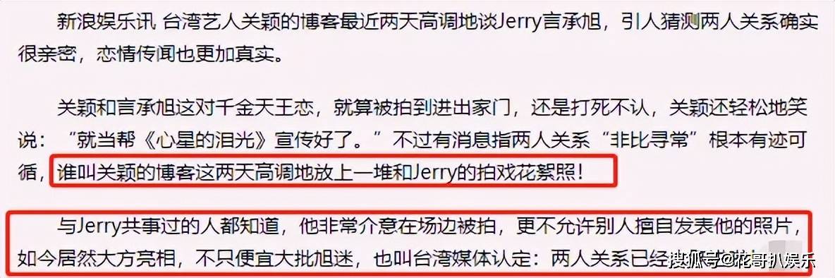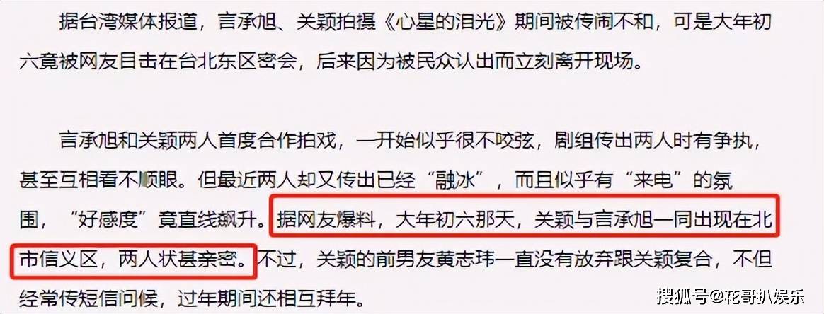 和黄志玮分手没多久,关颖和言承旭的绯闻就传得沸沸扬扬,两人因合作《心星的泪光》相识,一开始还被传拍戏不和。