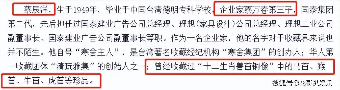 当年蔡家拍下圆明园十二生肖兽首中的四个,直接轰动全网,也让更多人见识到了这个豪门的底气。