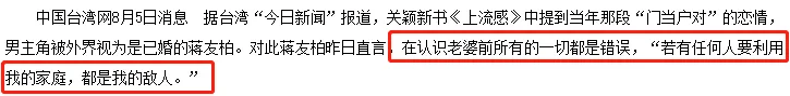 可蒋友柏对这段感情却十分不屑,不仅对外说在妻子之前的感情都是错误。