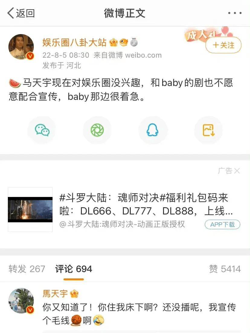 而马天宇就是那少数几个还把微博当朋友圈发的明星之一。