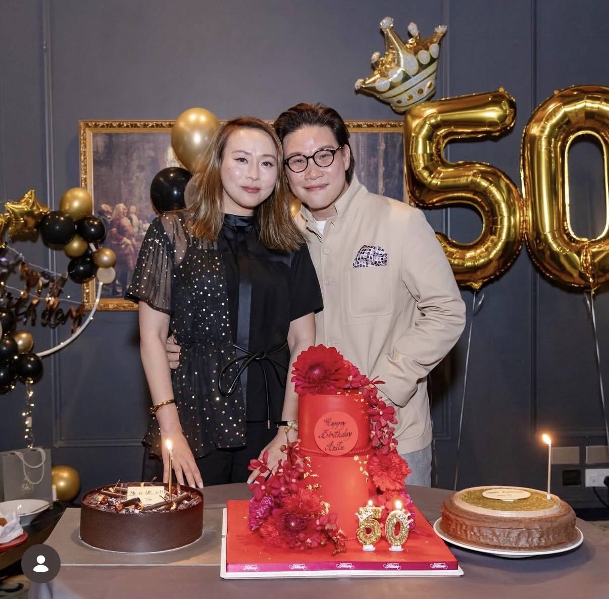 50岁生日对很多人来说是一个重要的日子,有条件的都会大肆庆祝一番,苏永康为太太在位于尖沙咀的1881Heritage举办生日会。1881 Heritage的前身是香港水警总区总部,1881年建成,如今改为“1881 Heritage”成为购物、餐饮于一体的中心,不少名人都曾经在此处的餐厅举办生日会。生日会的现场被简单地布置了一番,最显著的就是“50”字样的气球镶嵌在背景墙上,此外还用了黑色与金色的气球装饰,呈现出的是黑金的效果,与包厢的装潢相得益彰。