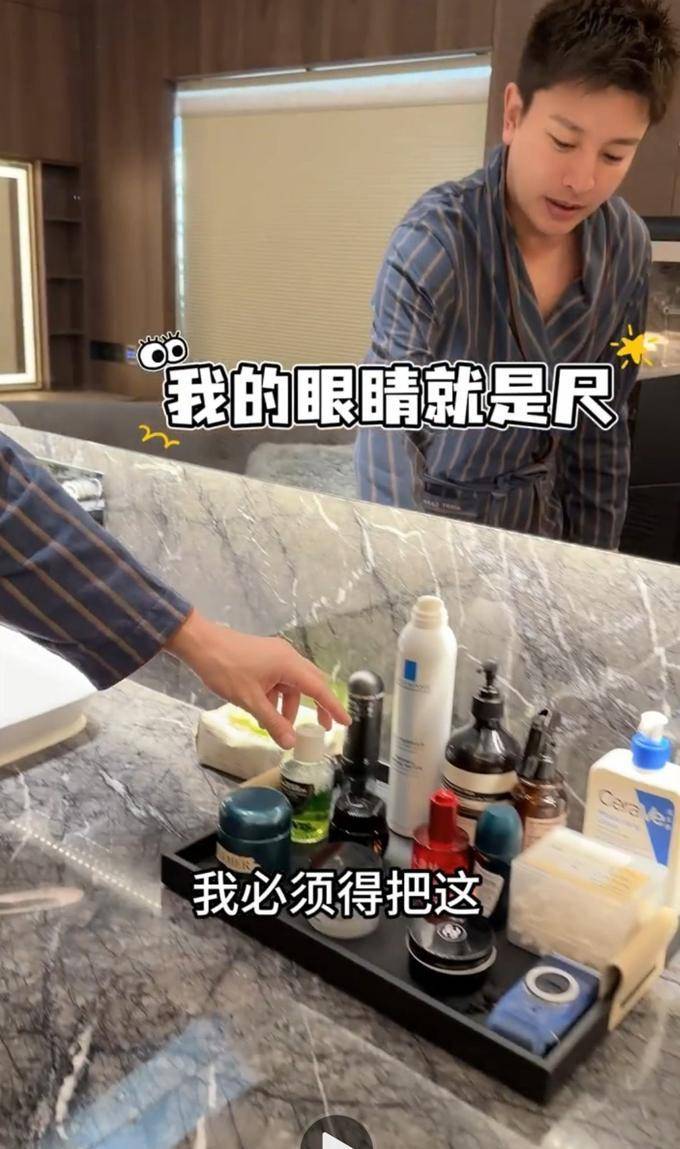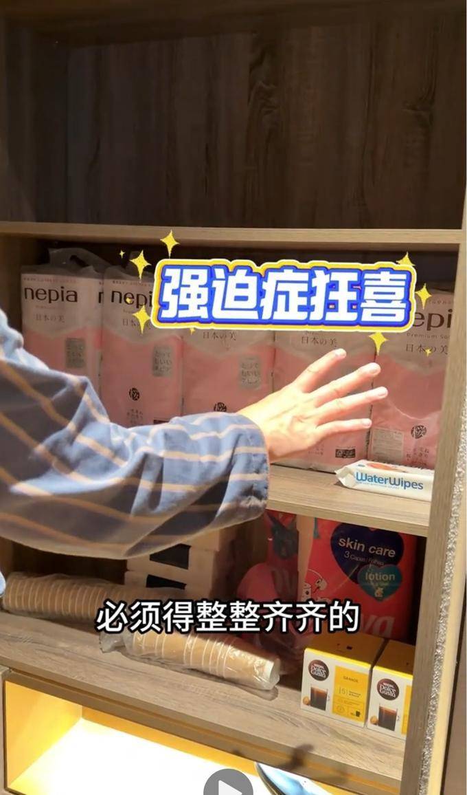 最让人记住的是他有点强迫症,看到洗手台上东西摆得不好看,他就会一个个调整,让所有瓶子的方向都一样,连柜子里的纸巾都叠得整整齐齐,强迫症患者看到后感觉特别自在,说有些中度强迫症,这一切都要靠自己摆出来。他对生活中的小细节如此关注,实在令人爱不释手。