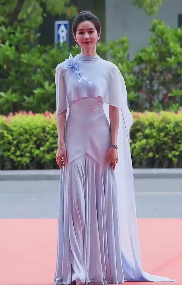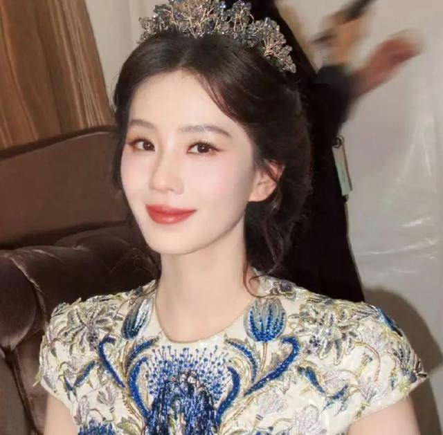 就像今年3月底的四川峨眉山红毯,别的女星都在拼露肤、拼设计,她一身蓝色重工礼服全裹出镜,头顶皇冠,腰背挺直,天鹅颈线条流畅。