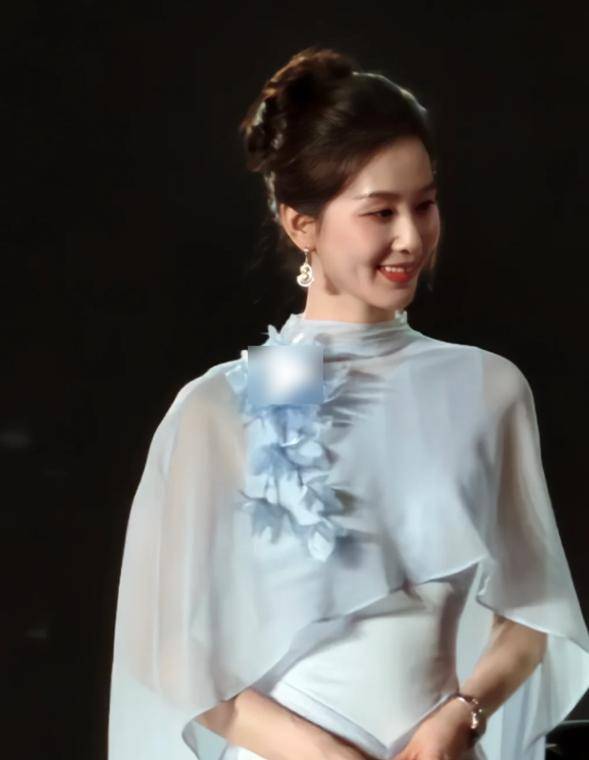 当天她穿了一袭Self-Portrait量身定制的浅蓝薄纱礼裙,薄如蝉翼的面料,在灯光下泛着细腻的光泽,行走间裙摆随风轻扬,若隐若现地勾勒出她曼妙的身形。