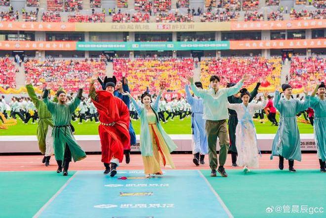 开幕式上,管晨辰身着精美的传统服饰,参与了表演《吴越太平年》,她与汪顺的合影更是成为焦点。过去五年,她几乎每年都会与汪顺合影留念,汪顺每次都打趣说:妹妹长高了,我都得踮脚配合。管晨辰则笑着回应:顺哥不管穿什么都很帅!面对自己这次的古装长裙造型,她的自信溢于言表:如果满分是100分的话,我打10000分!那份洒脱与自信,让在场的每一个人都感受到了她独特的光芒。