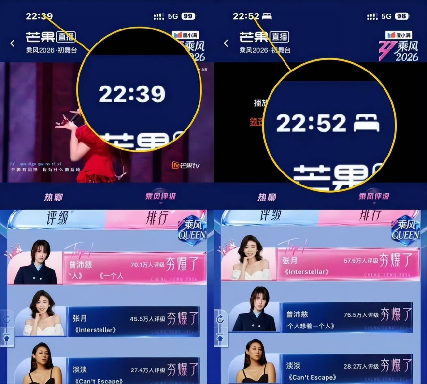 在22点39秒时,张月还落后曾沛慈24万票,可是在22点52秒的时候,票数就已经追平了,也就是说13分钟暴涨12万票,正因如此,张月直接获得第一名。