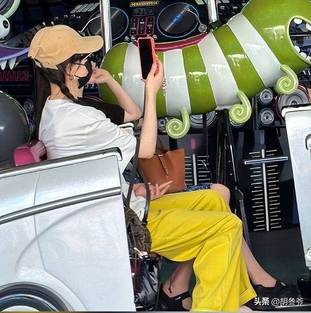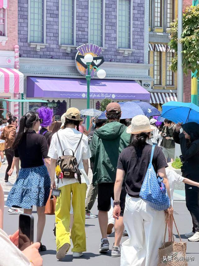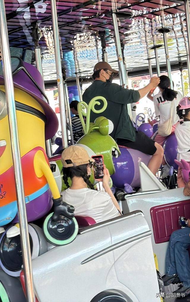 6岁的小小糖身高快到爸爸肩膀,一家三口低调排队、玩项目,没有保镖助理随行,和普通家庭没两样。