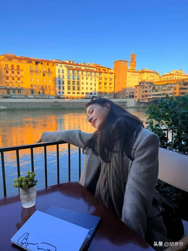 更有意思的是,娜然晒出的夕阳露台照,背景是意大利经典建筑,她围着那条草绿色围巾,眼神温柔得能滴出水来,完全是沉浸在爱情里的模样。